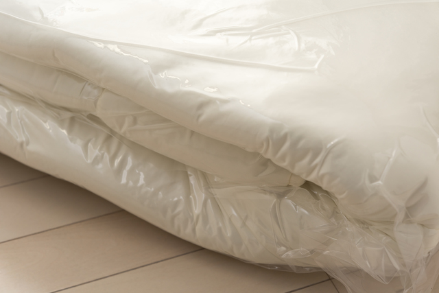 圧縮袋に詰め込まれた状態で長期間保管されると、布団の中の繊維が圧力によって縮み、劣化しやすくなります。
