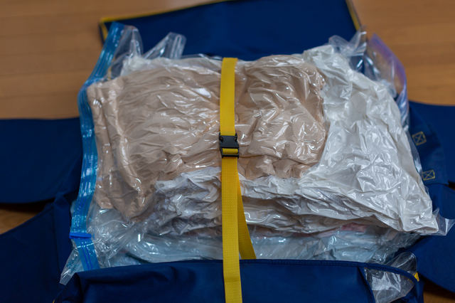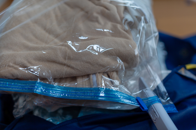 洋服を入れた後、圧縮袋をしっかりと空気を抜くことは大切ですが、過度に圧縮しないように注意しましょう。