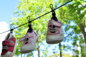 ハンガーを使用して靴を乾燥させることで早く乾かすことができます。