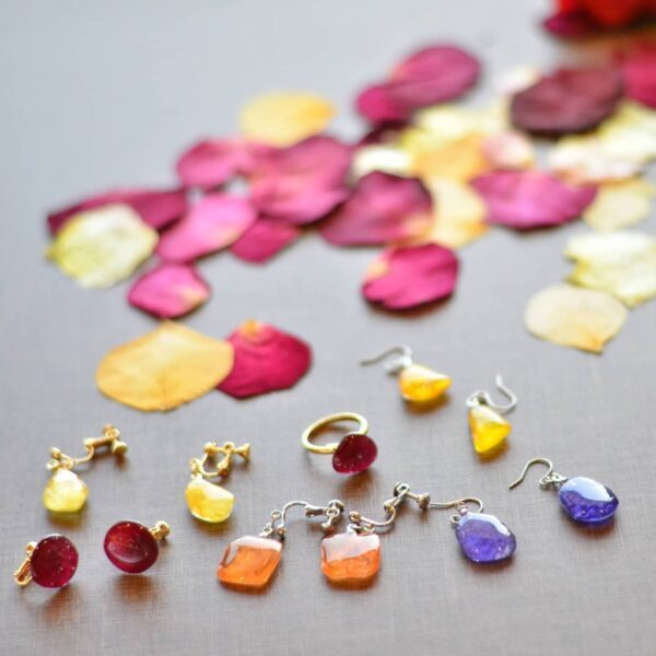生花店の販売できなかった廃棄花、オフィス等で生け替えられた花などの花びらをアクセサリーにしています。