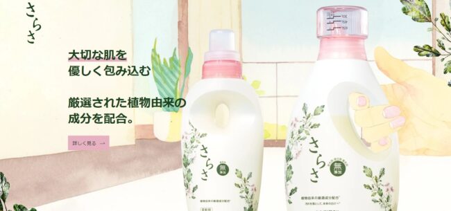 「さらさ」は、厳選された植物由来成分が配合されていて、お肌にとっても優しい洗濯用中性洗剤です。